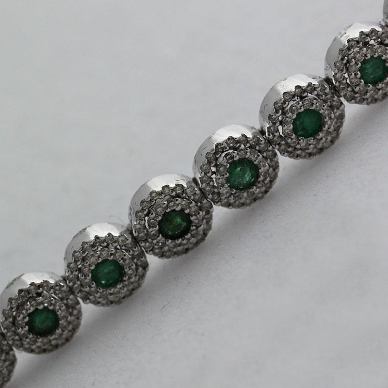 Item details: DIAMOND: 725 Round cut White Diamond @ 2.92ct ---GEMSTONE: 25 Emerald @ 2.66ct---METAL: 14K White Gold---Metal weight 20.85 grams---SKU: 286454C-1 --- Consignor: RC Fine Jewelers --- Availability: Ready to Ship
