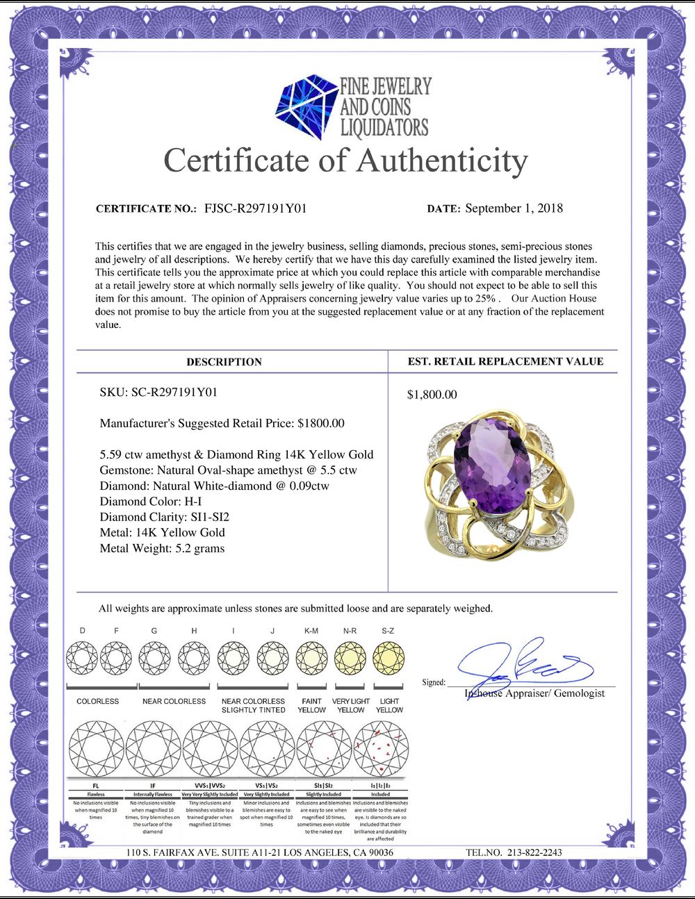 REF-59Z6Y ---- SKU:SC-R297191Y01 ---- Manufacturer's Suggested Retail Price - $1800.00 ---- Natural 5.59 ctw amethyst & Diamond Engagement Ring 14K Yellow Gold