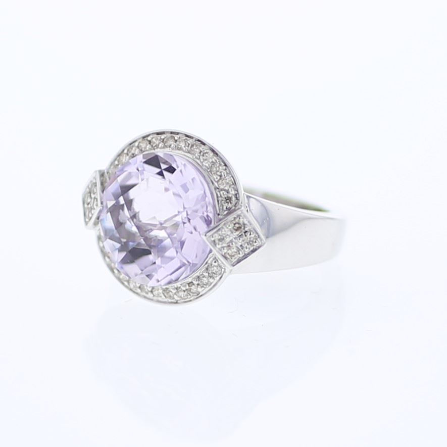 REF-86F4M ---- Natural 5.71 CTW Amethyst & Diamond Ring 18K White Gold