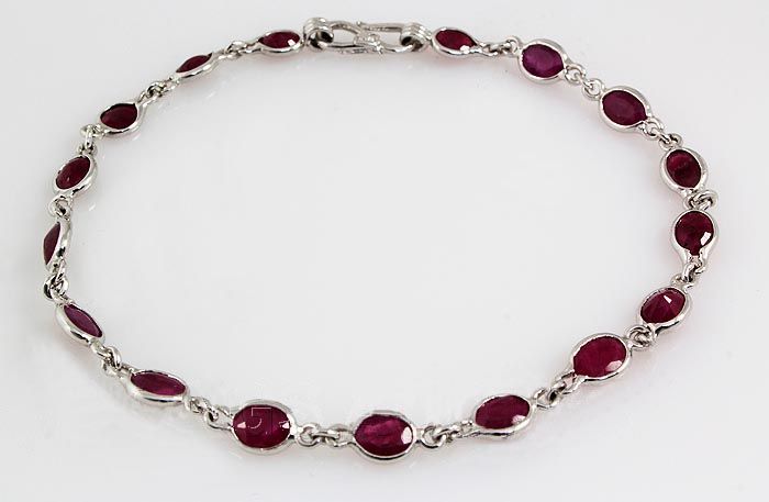 Natural 5.95CT Ruby Gemstone in Silver Bezel Bracelet 2 **|**|** 7.0" Long Natural Ruby Gemstone in Bezel Design Silver Bracelet; 17pcs 5x3mm ; MSRP: $500