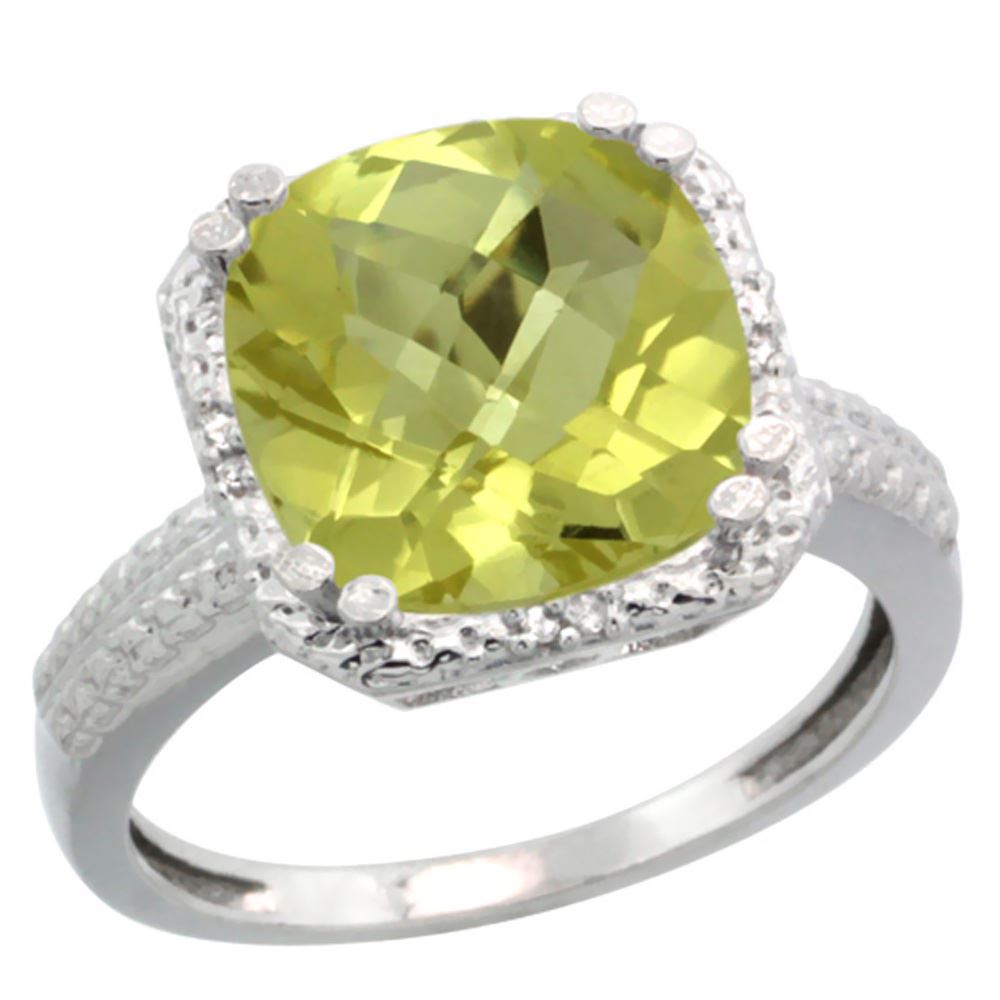 Natural 5.96 ctw Lemon-quartz & Diamond Engagement Ring 14K White Gold - SC-CW427145-REF#40V5F