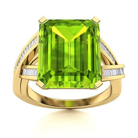 Natural 5.97 CTW Peridot & Diamond Engagement Ring 18K Yellow Gold