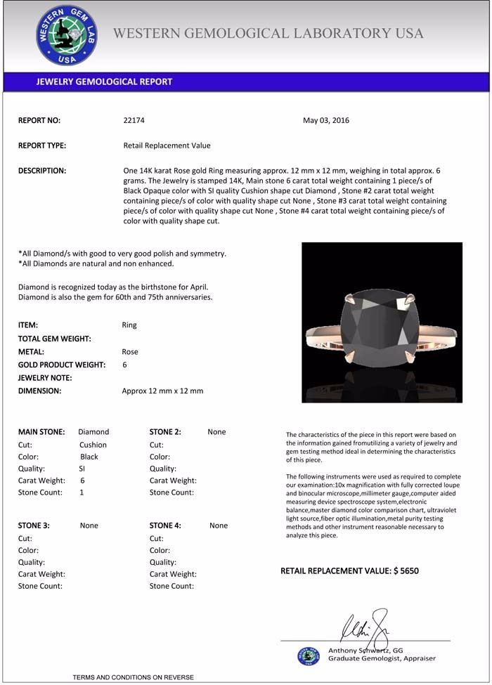 total approx. 6 grams. The Jewelry is stamped 14K, Main stone 6 carat total weight containing 1 piece/s of Black Opaque color with