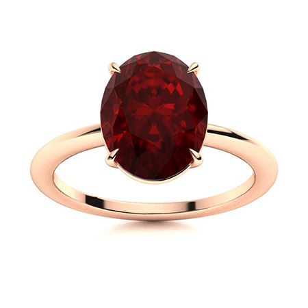 Natural 6.01 CTW Garnet Solitaire Ring 14K Rose Gold