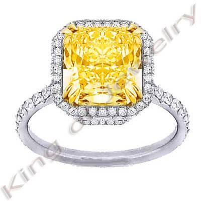 Natural 6.04 CTW Canary Yellow Radiant Cut Diamond Ring 14KT Two-tone