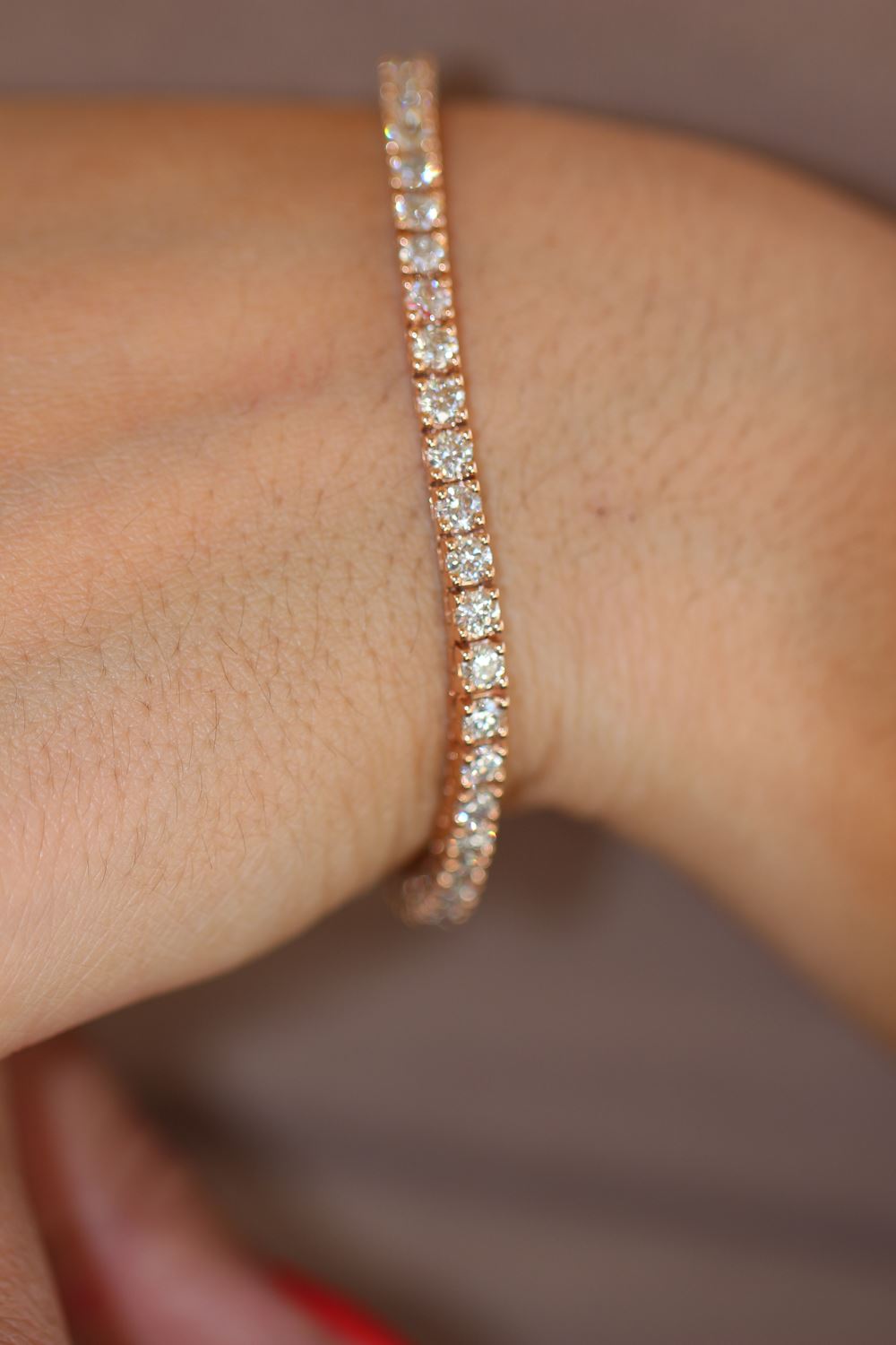 REF-512A5R - SKU: BR80006 ---- Natural 6.08 ctw Diamond Eternity Tennis Bracelet 18K Rose Gold
