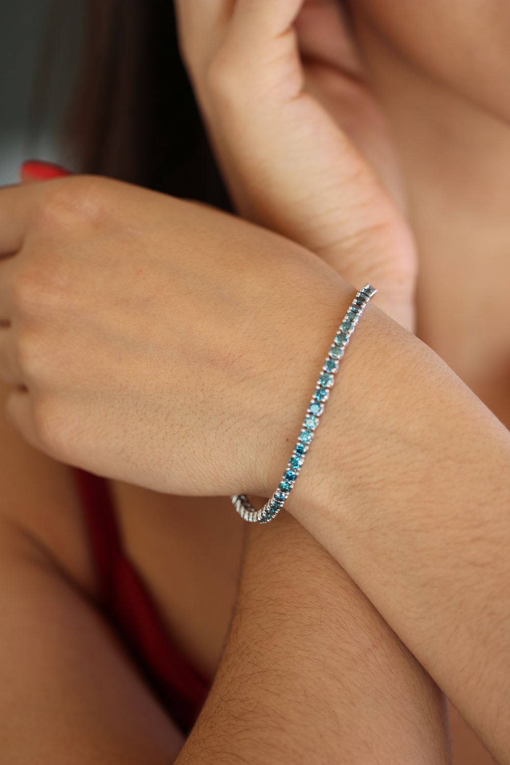 REF-395F2N - SKU: BR80001 ---- Natural 6.09 ctw Blue Diamond Eternity Tennis Bracelet 14K White Gold