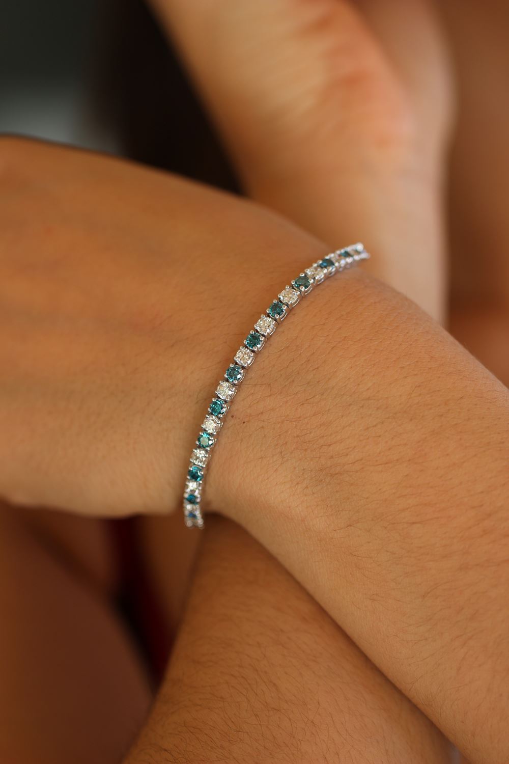 REF-408Z2R - SKU: BR80002 ---- Natural 6.13 ctw White & Blue Diamond Eternity Tennis Bracelet 14K White Gold