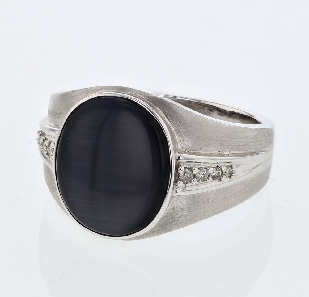 REF-80H3W ---- Natural 6.15 CTW Cat's Eye & Diamond Ring 14K White Gold