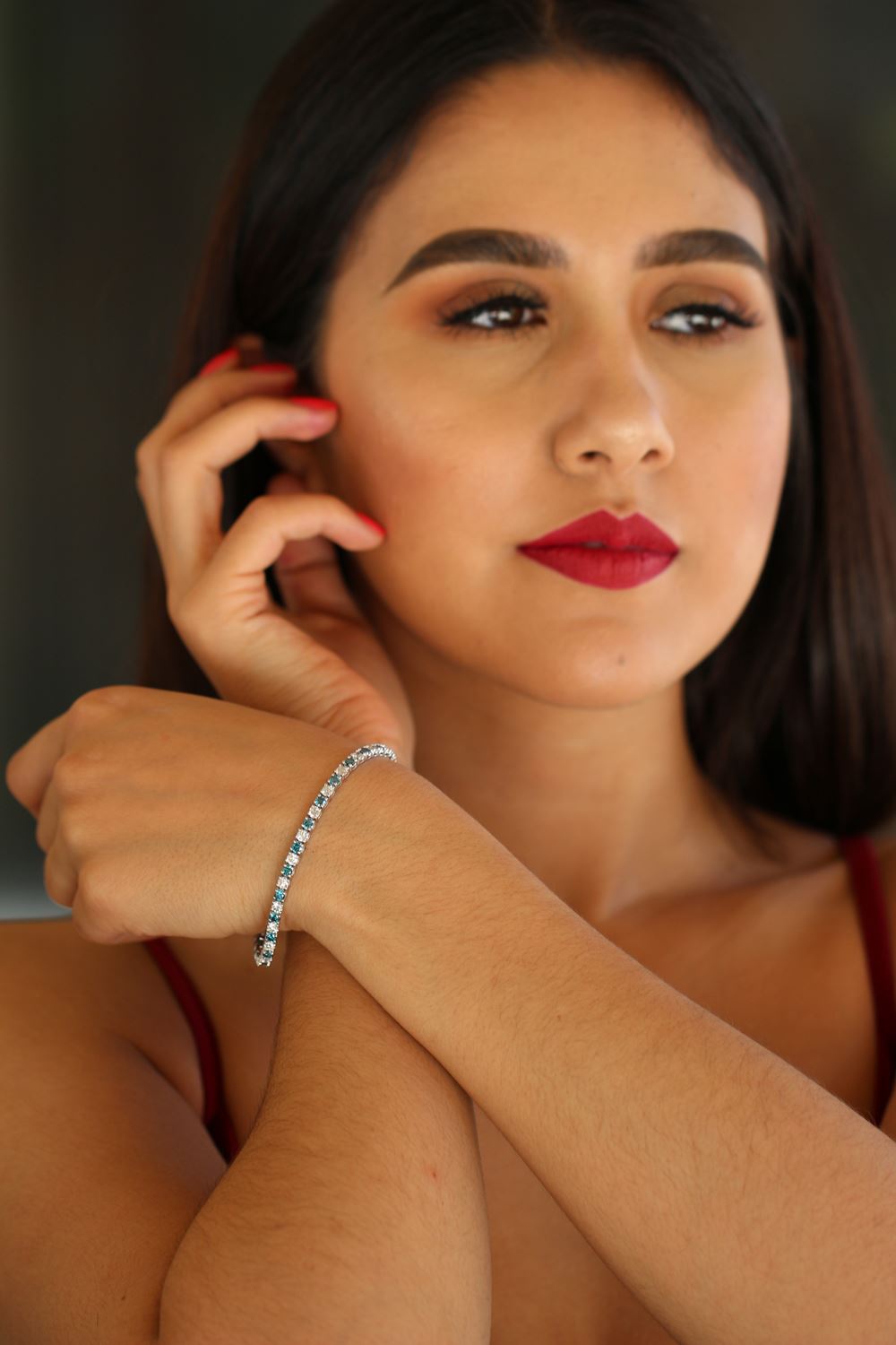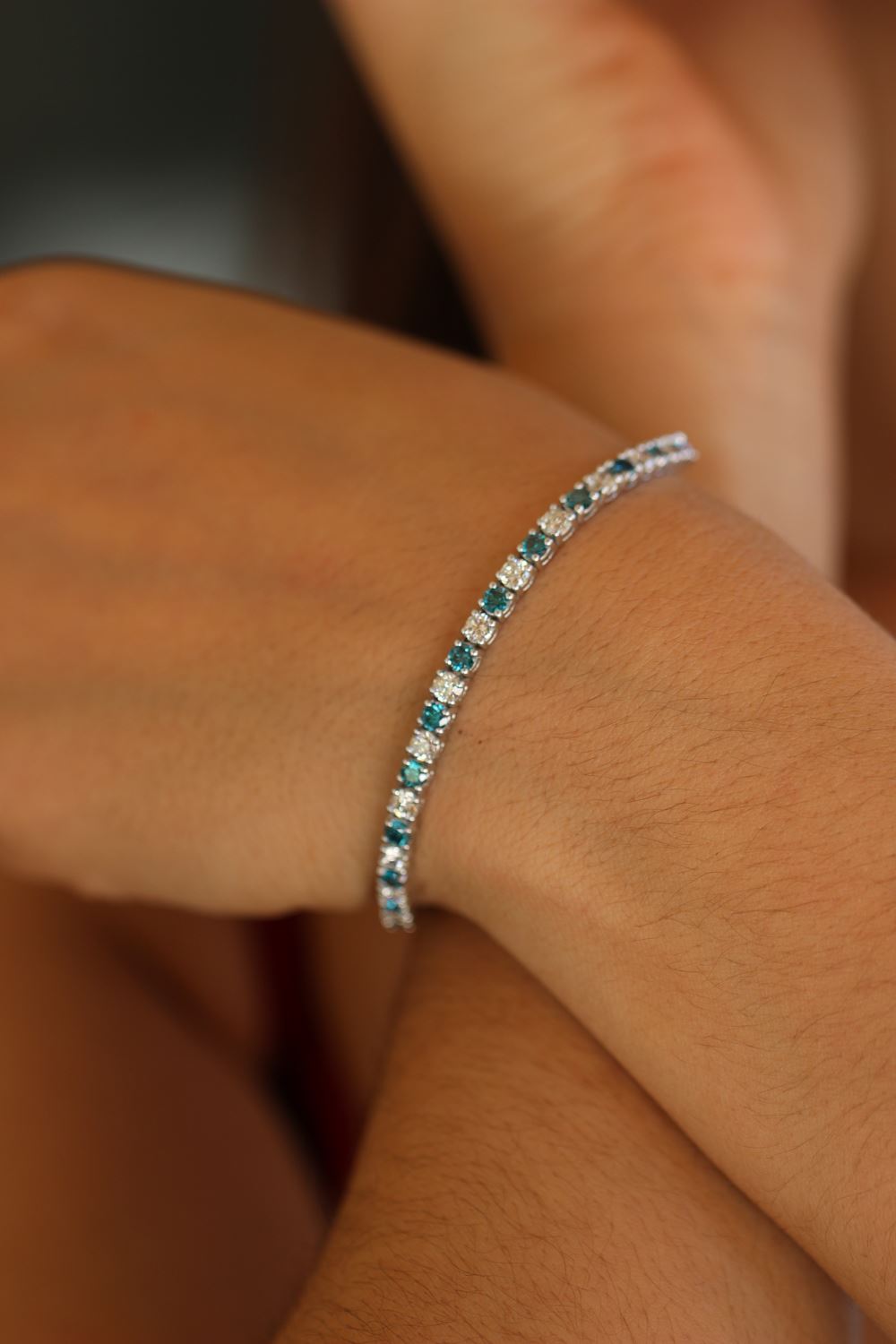 REF-420X6Y - SKU: BR80002 ---- Natural 6.19 ctw White & Blue Diamond Eternity Tennis Bracelet 14K White Gold