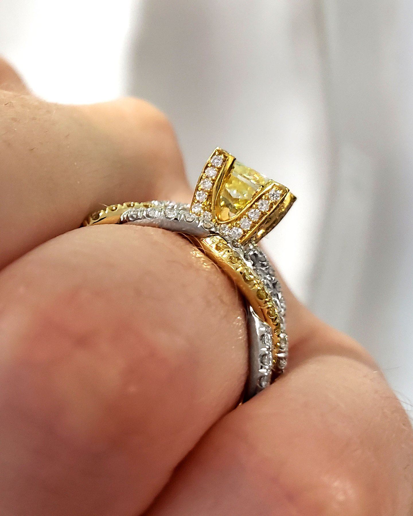 Natural 6.22 CTW Canary Radiant Cut Diamond Eternity Twist Shank Ring 18KT Two-tone