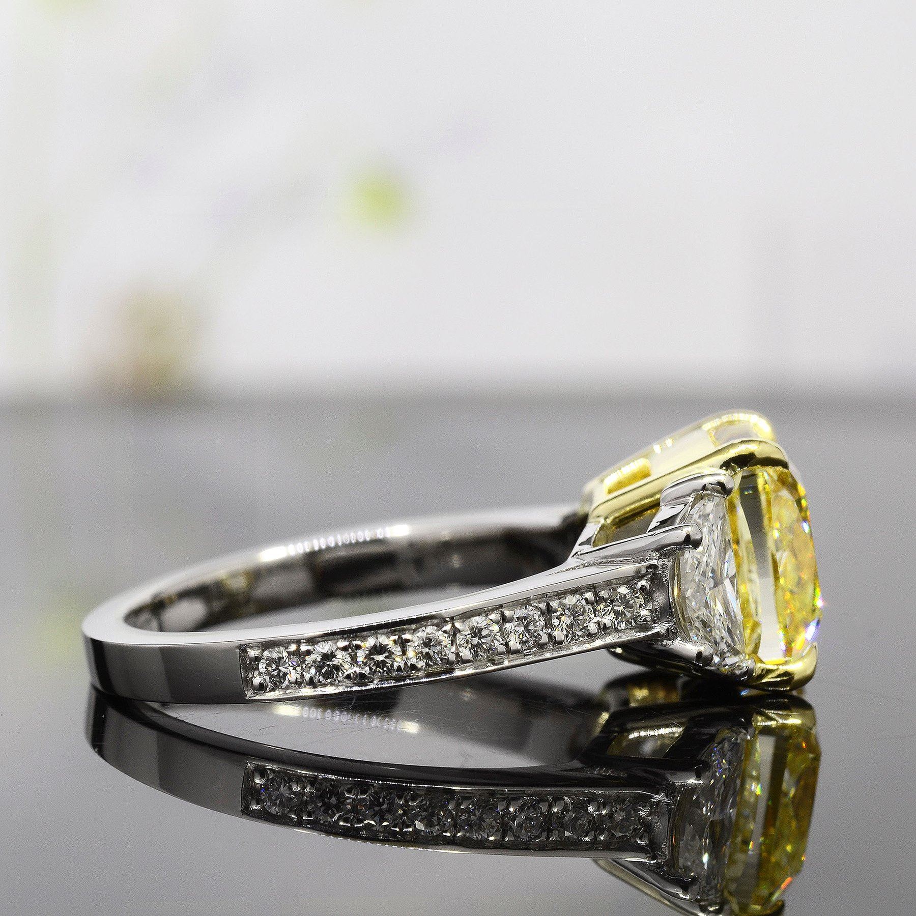 Natural 6.22 CTW Canary Yellow Rectangle Radiant Cut Diamond Engagement Ring 14KT Two-tone