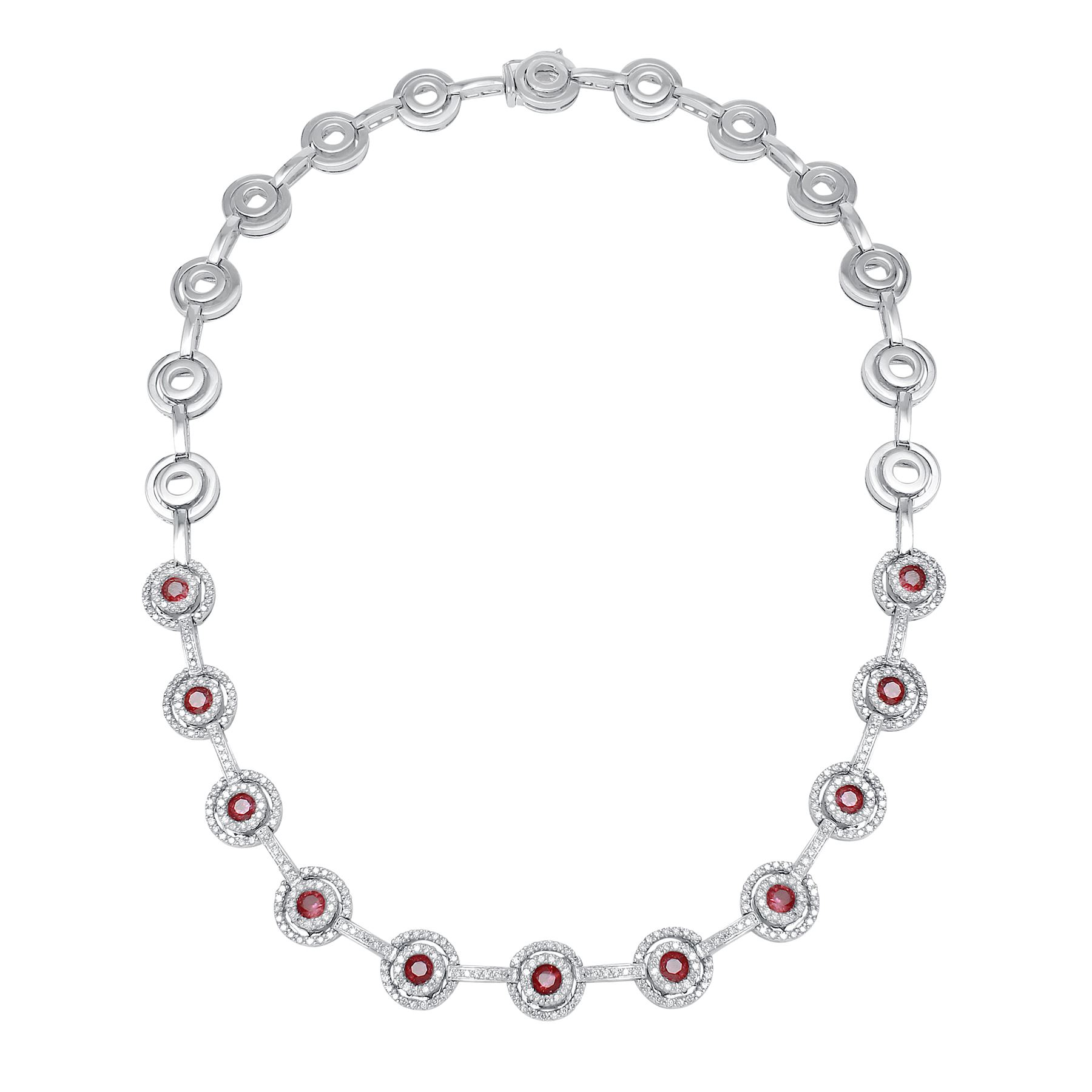 REF-592F2M ---- Natural 6.64 CTW Ruby & Diamond Necklace 14K White Gold
