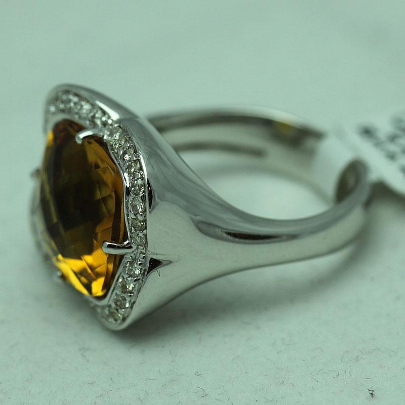 Item details: DIAMOND: 32 Round cut White Diamond @ 0.32ct ---GEMSTONE: 1 Citrine @ 6.34ct---METAL: 14K White Gold---Metal weight 7.95 grams---SKU: 334539C --- Consignor: RC Fine Jewelers --- Availability: Ready to Ship