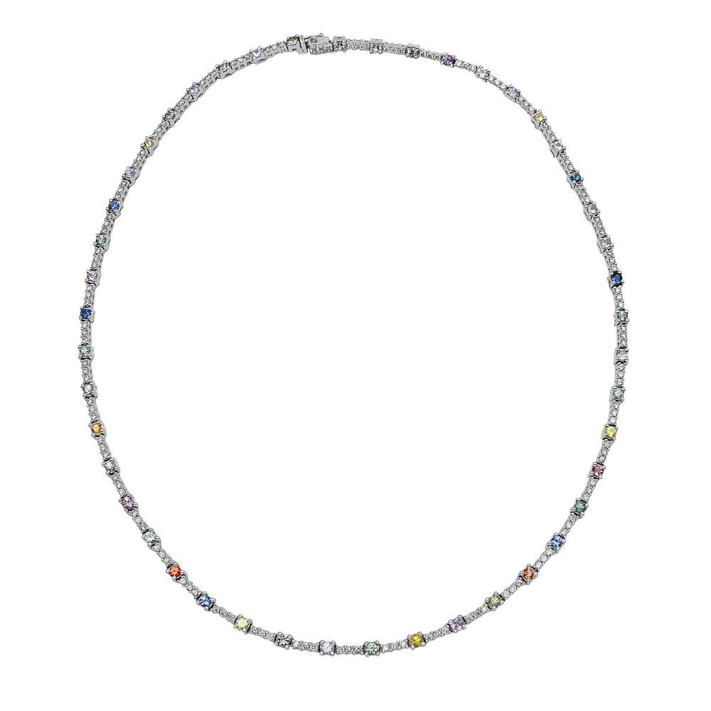 REF-278T3X ---- Natural 6 CTW Multi-Sapphire & Diamond Necklace 14K White Gold