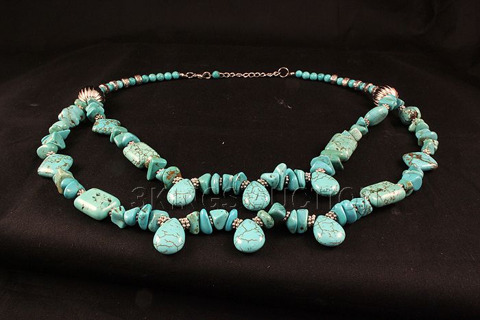 Natural 623.00ctw Turquoise Sterling Silver Necklace **|**|** 22" Elegant Southwestern Style Turquoise Necklace with 2 Rows Design, 2 Silver Balls and Silver Bead Spacers and lobster lock. ; MSRP: $300