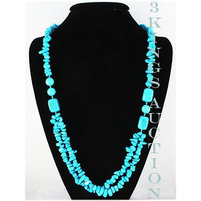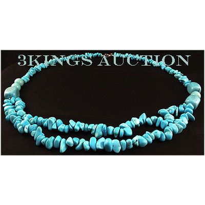 Natural 690.00ctw Turquoise Sterling Silver Necklace **|**|** Eye-catching 30" Silver Turquoise Necklace with 2 Rows Design ; MSRP: $300