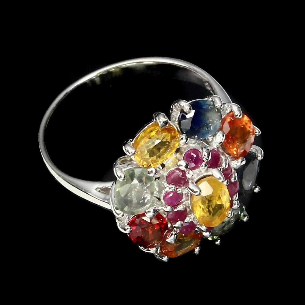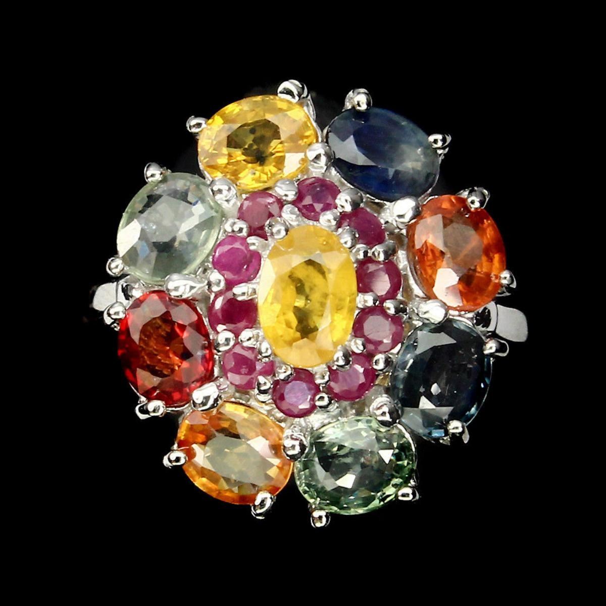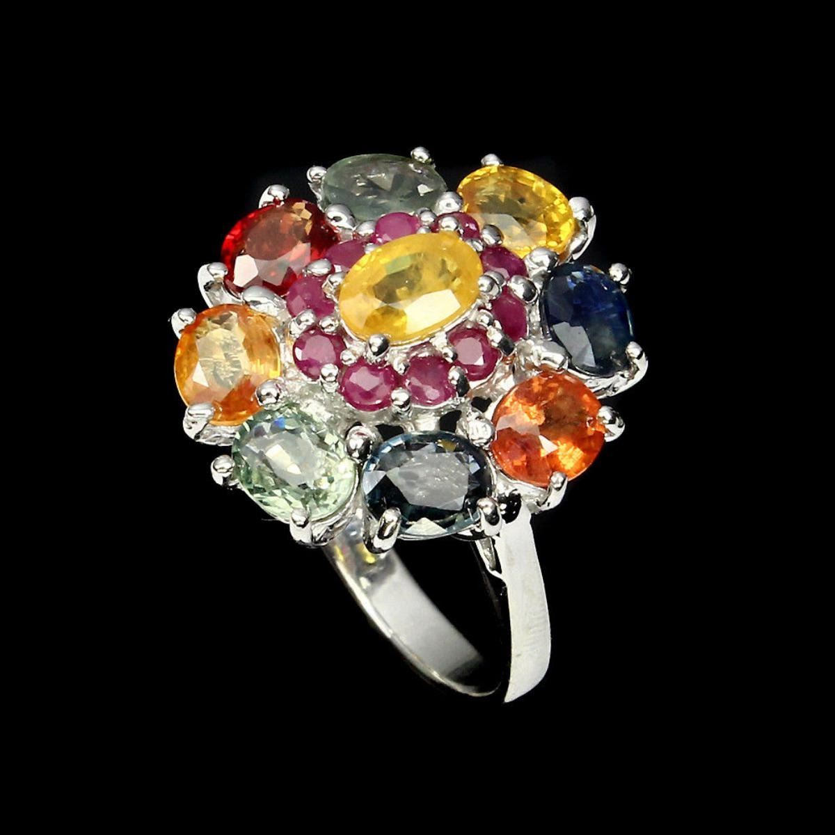 925 STERLING SILVERPLATE14K WHITE GOLDRING SIZE7.5(resizeable)MAIN STONESAPPHIREOTHER GEMSRUBYTOTAL WEIGHT30.67 CT (TOTAL WEIGHT OF SILVER + STONE)DIMENSION* STONE 2.0 TO 6.0 X 4.0 MM. * RING 7.5 SIZE * FACE RING 19.0 X 17.0 MM.MAIN STONE SHAPEOVAL CUTMAIN STONE COLORMULTI-COLORCLARITY/GRADEIF TO VVSLUSTERELEGANTTREATMENTHEATEDORIGINSONGEA - AFRICAHARDNESS9.0