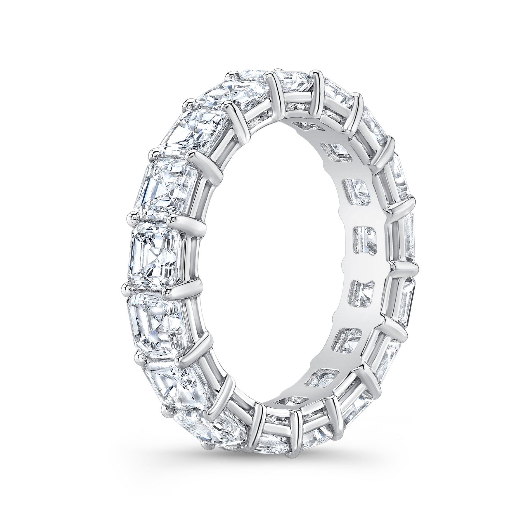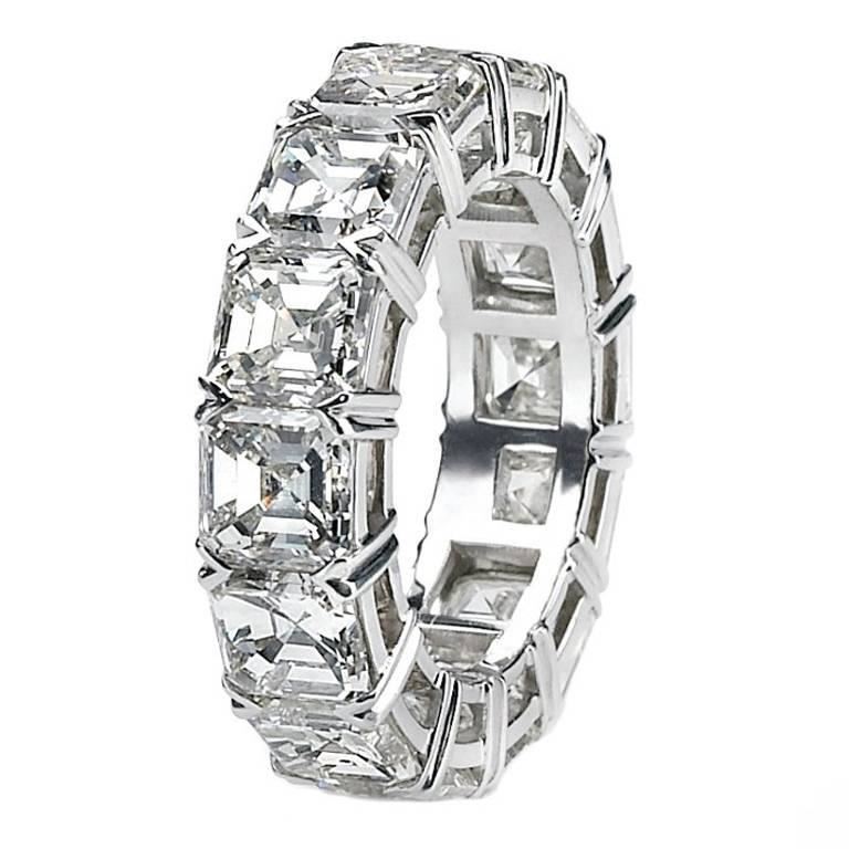 Natural 7.02 CTW Asscher Cut Diamond Eternity Ring 18KT White Gold