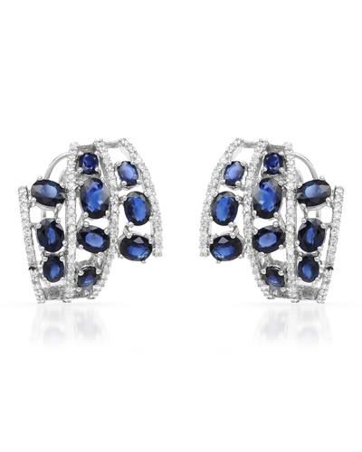 REF-266T4X ---- Natural 7.33 CTW Sapphire & Diamond Earrings 18K White Gold