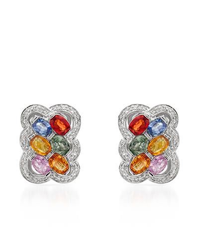 REF-156M6F ---- Natural 7.36 CTW Multi-Sapphire & Diamond Earrings W=5MM 14K Gold