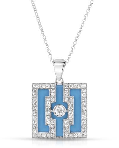 REF-121H5W ---- Natural 7.41 CTW Turquoise & Diamond Necklace 18K White Gold