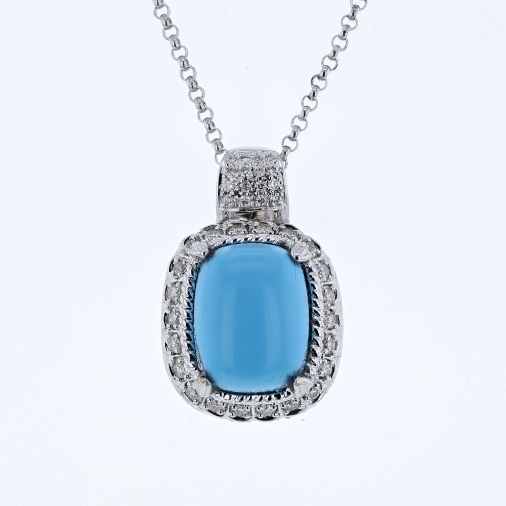 REF-111T6X ---- Natural 7.96 CTW Turquoise & Diamond Necklace 14K White Gold