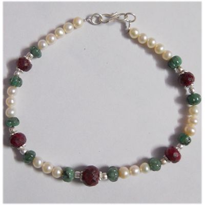 Natural 77.90ct Pearl/Emerald. Ruby Bracelet .925 Sterl **|**|** ; MSRP: $240