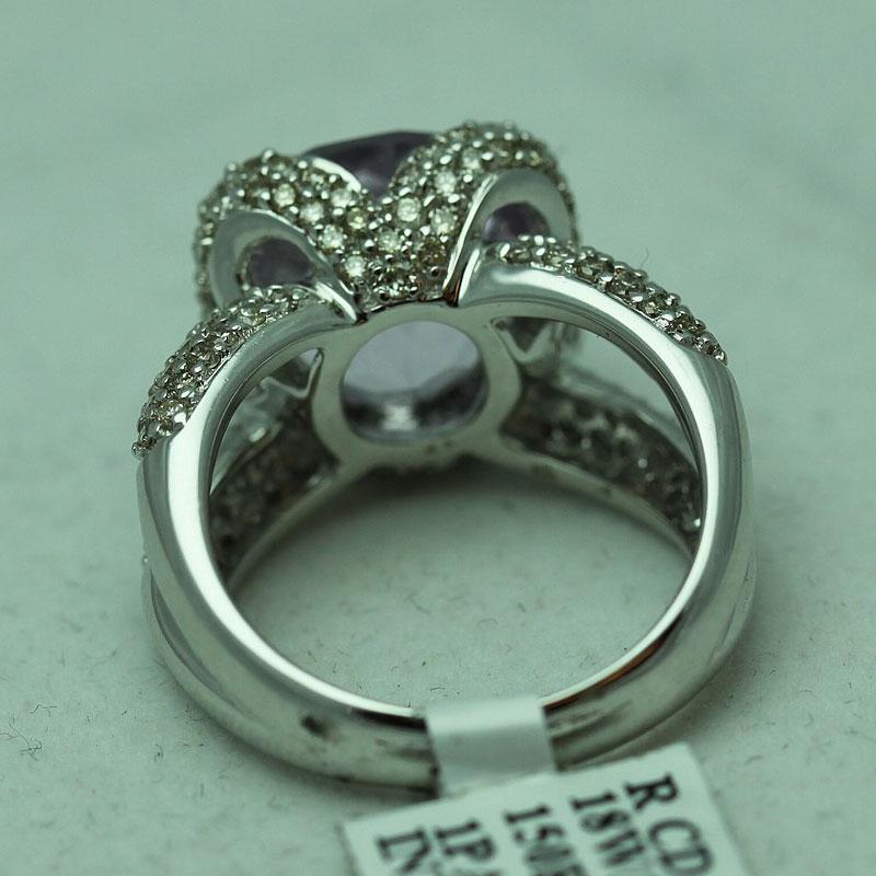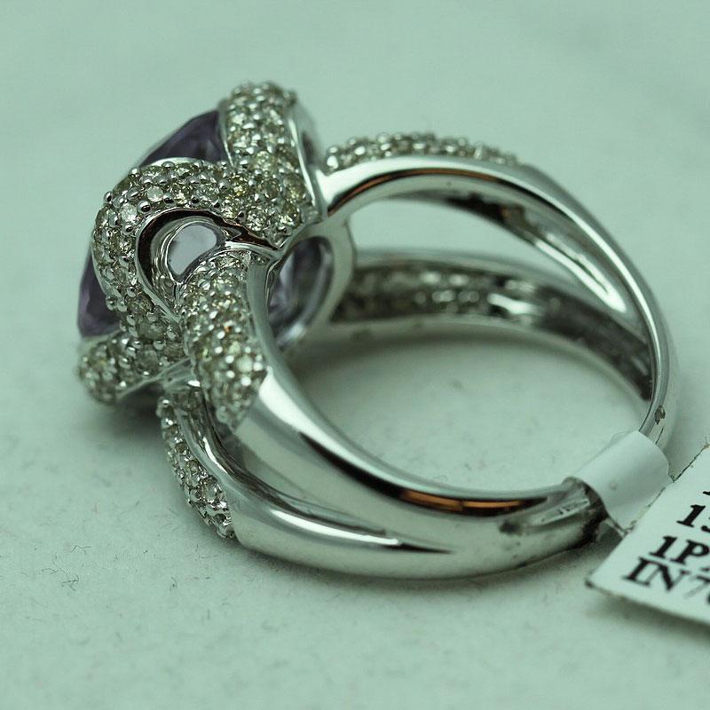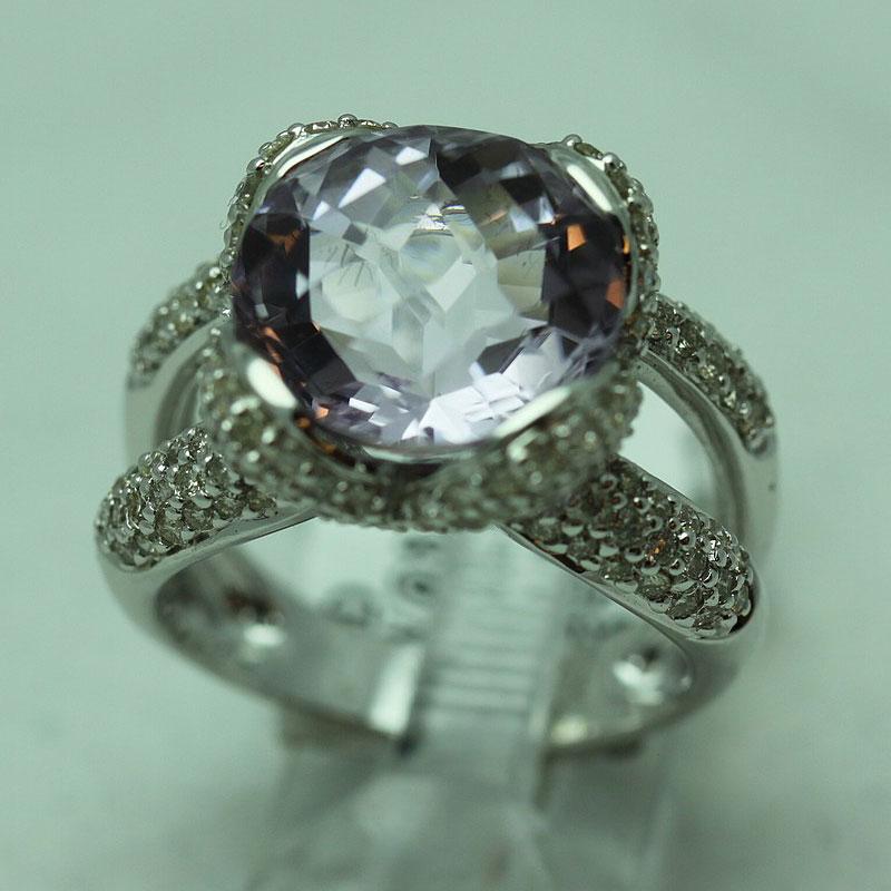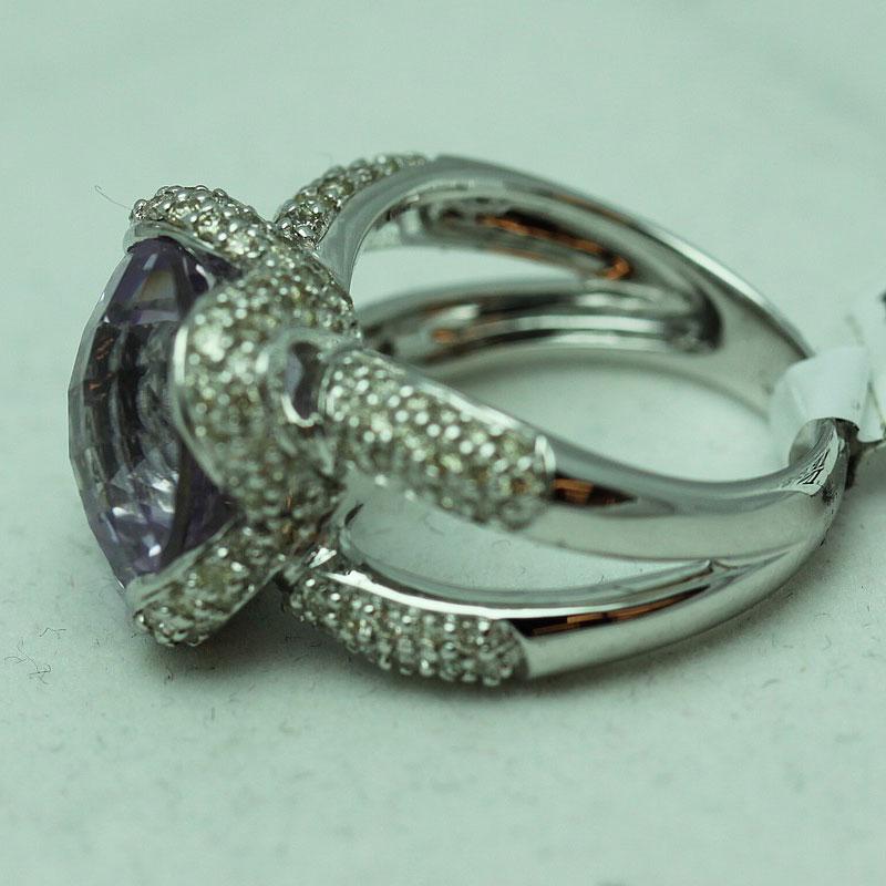 Item details: DIAMOND: 150 Round cut White Diamond @ 1.25ct ---GEMSTONE: 1 Pink Amethyst @ 7.11ct---METAL: 18K White Gold---Metal weight 8.62 grams---SKU: 283275C --- Consignor: RC Fine Jewelers --- Availability: Ready to Ship