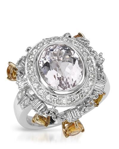 REF-140T4X ---- Natural 8.44 CTW Kunzite & Diamond Ring 18K Two Tone Yellow Gold