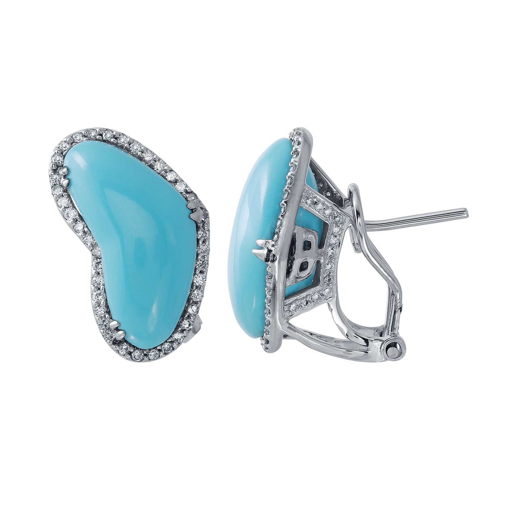 REF-73H8W ---- Natural 8.84 CTW Turquoise & Diamond Earrings 14K White Gold
