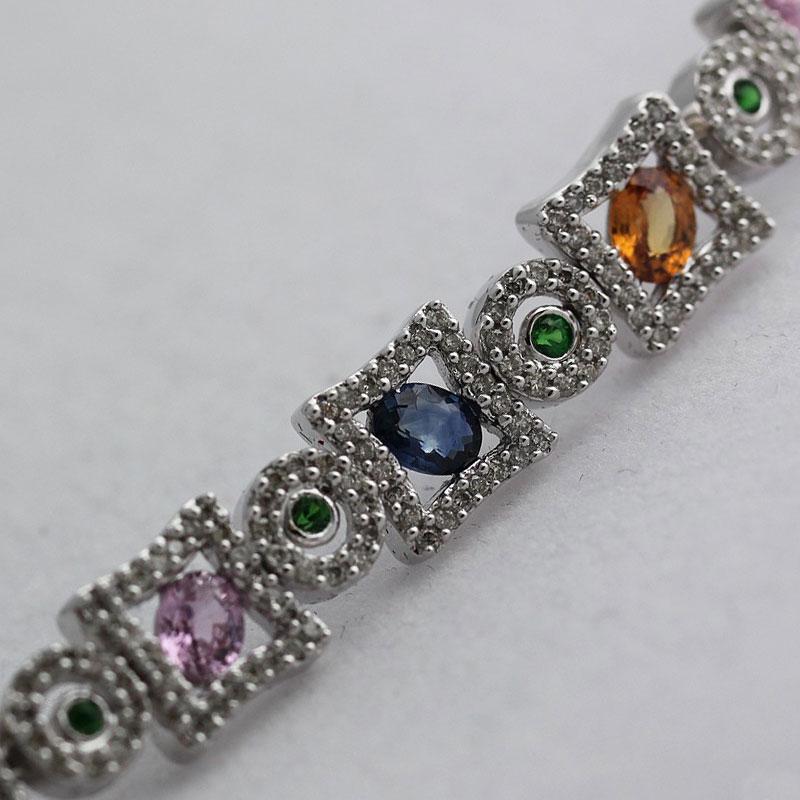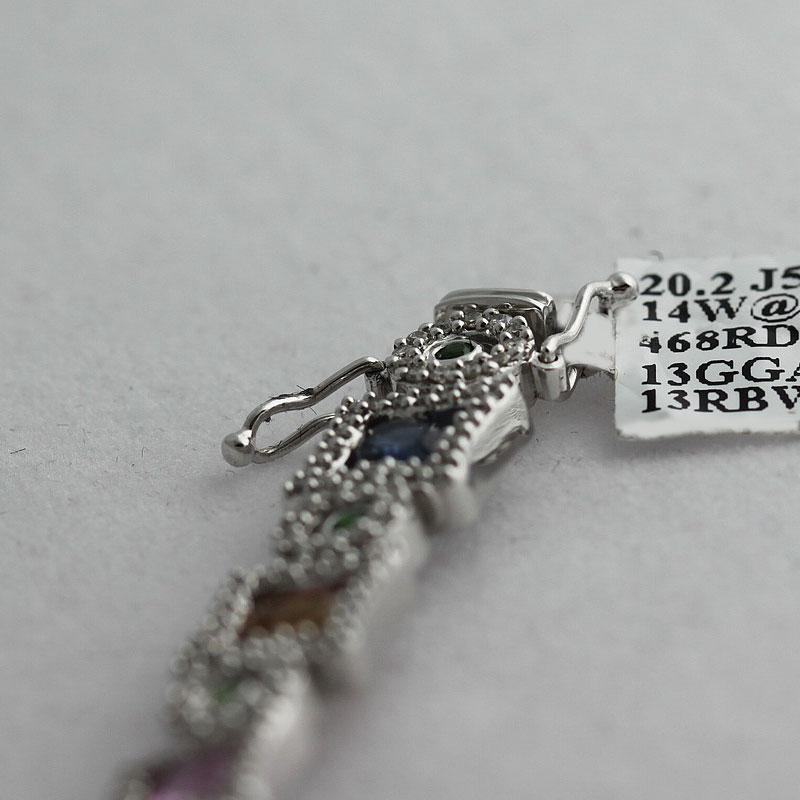 Item details: DIAMOND: 468 Round cut White Diamond @ 2.3ct ---GEMSTONE: 13 Green Garnet @ 0.46ct and 13 Multi-color Sapphire @ 6.17ct---METAL: 14K White Gold---Metal weight 18.27 grams---SKU: 320639C-11 --- Consignor: RC Fine Jewelers --- Availability: Ready t