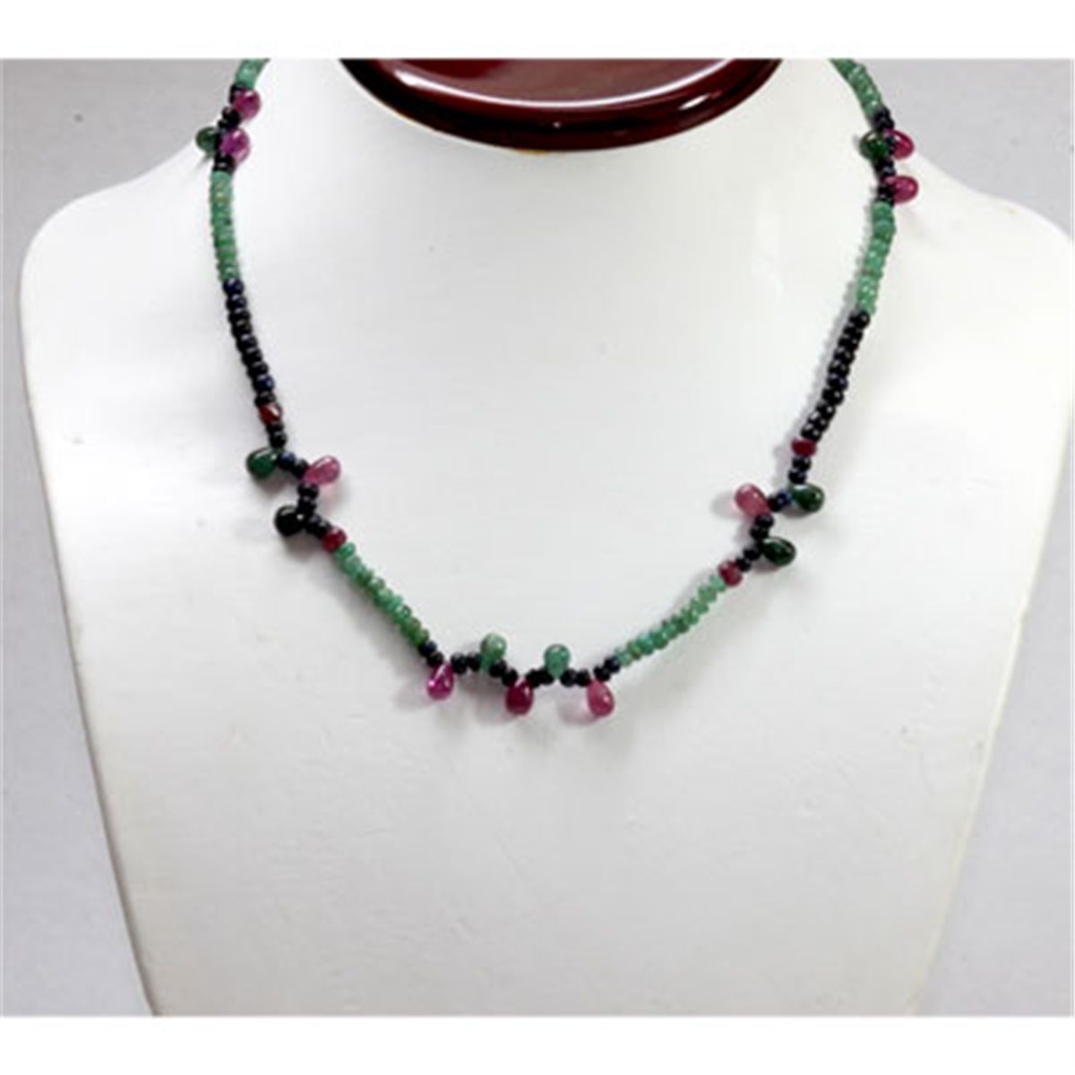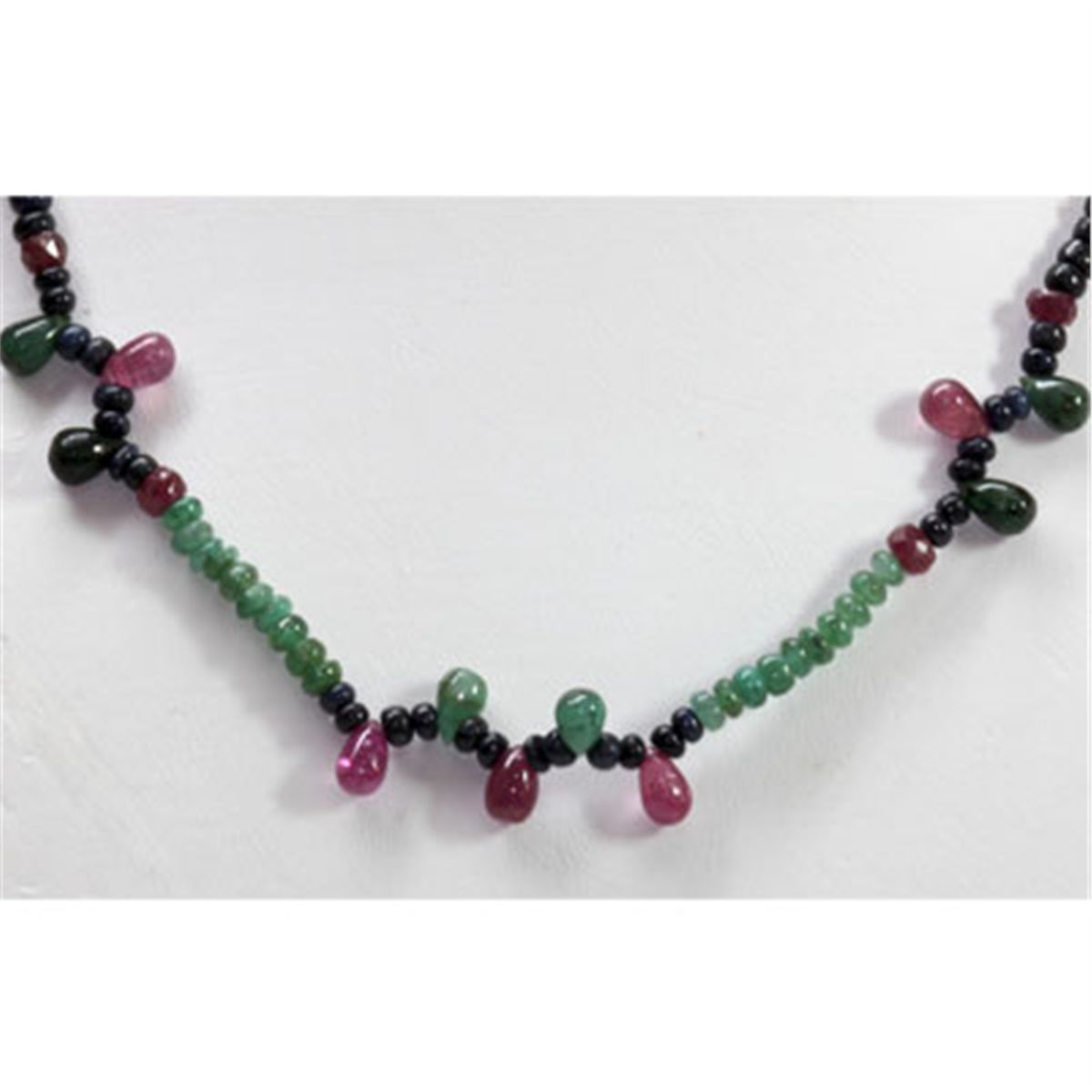 Natural 80.47 ctw Emerald, Ruby & Sapphire Bead Necklace ; MSRP: $760