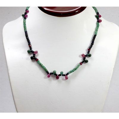 Natural 80.47 ctw Emerald Ruby Sapphire Bead Necklace **|**|** Natural 80.47 ctw Emerald, Ruby & Sapphire Bead Necklace ; MSRP: $760