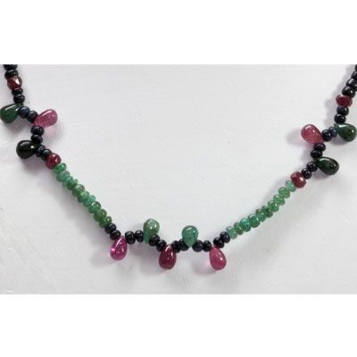 Natural 80.47 ctw Emerald Ruby Sapphire Bead Necklace **|**|** Natural 80.47 ctw Emerald, Ruby & Sapphire Bead Necklace ; MSRP: $760
