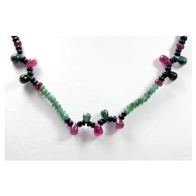 Natural 80.61 ctw Emerald Ruby Sapphire Bead Necklace **|**|** Natural 80.61 ctw Emerald, Ruby & Sapphire Bead Necklace ; MSRP: $761