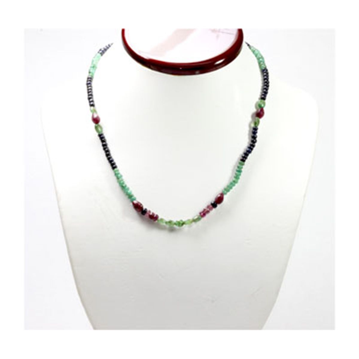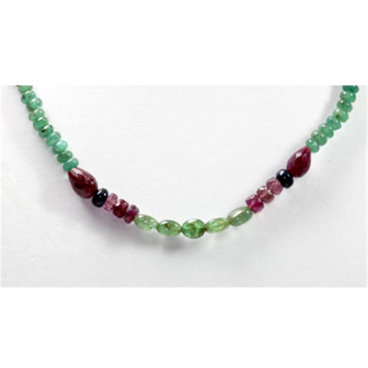 Natural 85.48 ctw Emerald, Ruby & Sapphire Bead Necklace ; MSRP: $802