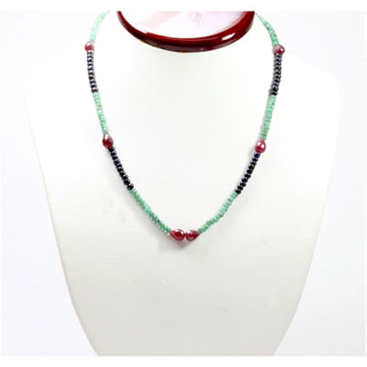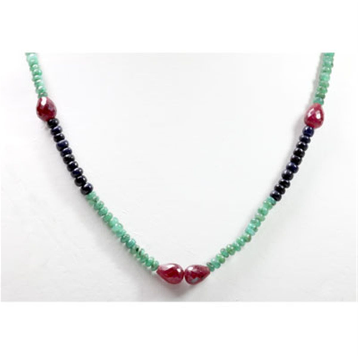Natural 85.54 ctw Emerald, Ruby & Sapphire Bead Necklace ; MSRP: $803