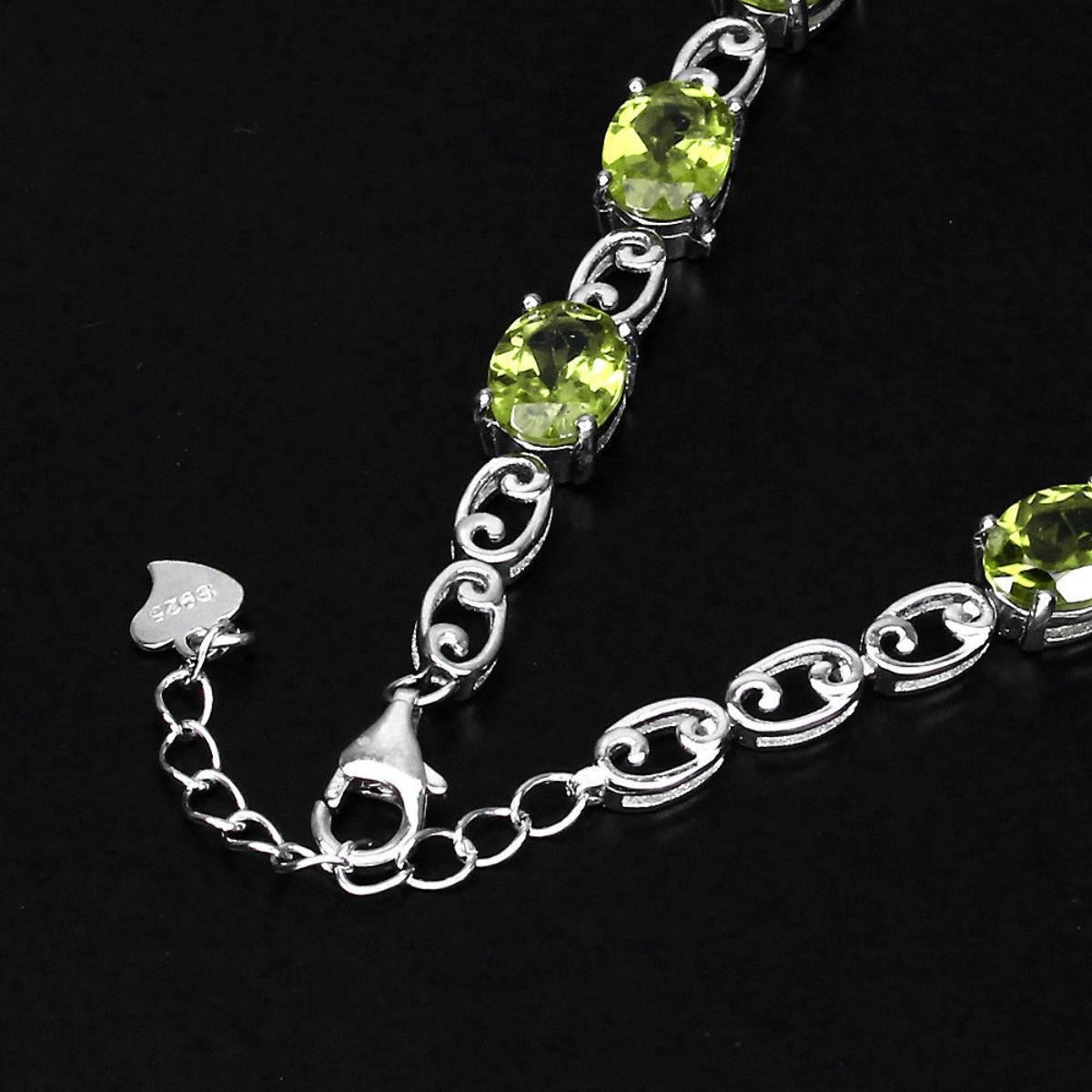 925 STERLING SILVERPLATE14K WHITE GOLDLENGTH (INCHES)9MAIN STONEPERIDOTOTHER GEMSTOTAL WEIGHT45.33 CT (TOTAL WEIGHT OF SILVER + STONE)DIMENSION* STONE 8.0 X 6.0 MM. * FACE BRACELET 135.0 X 6.0 MM.MAIN STONE SHAPEOVAL CUTMAIN STONE COLORTOP RICH GREENCLARITY/GRADEIFLUSTERGORGEOUSTREATMENTUNHEATEDORIGINPAKISTANHARDNESS6.5 - 7.0