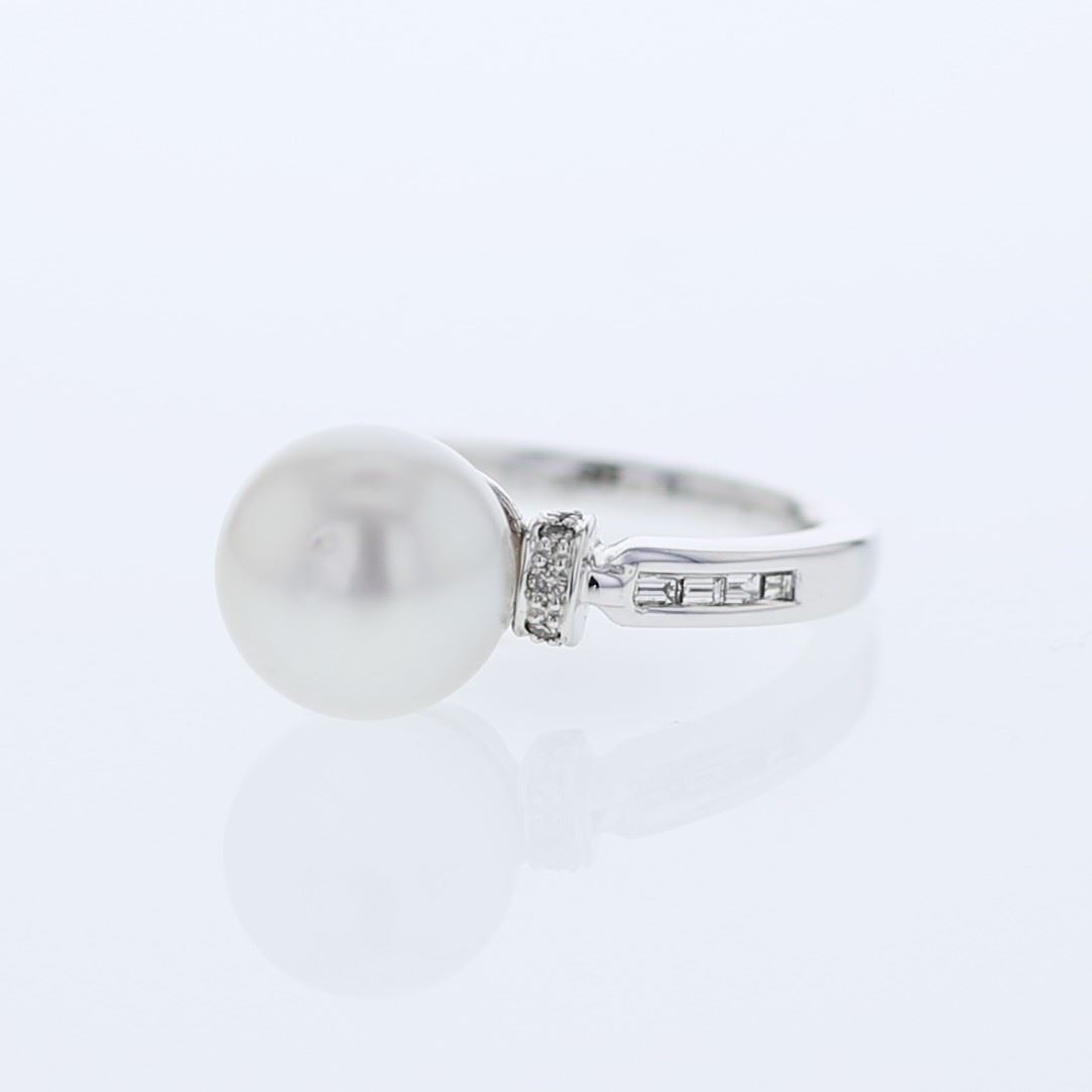 REF-65W7H ---- Natural 9.04 CTW Pearl & Baguette Ring 14K White Gold