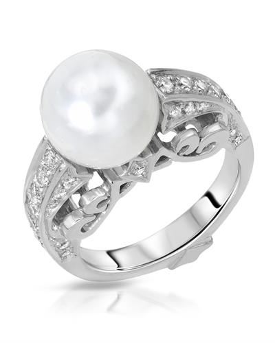 REF-129H6W ---- Natural 9.18 CTW Pearl & Diamond Ring 14K White Gold