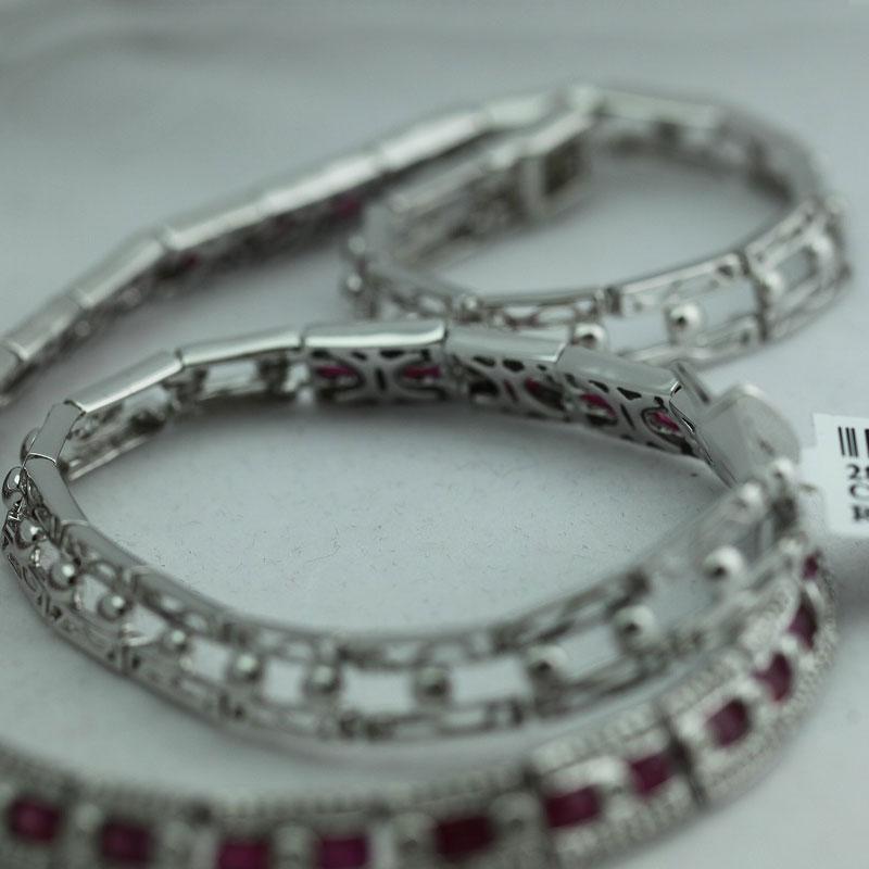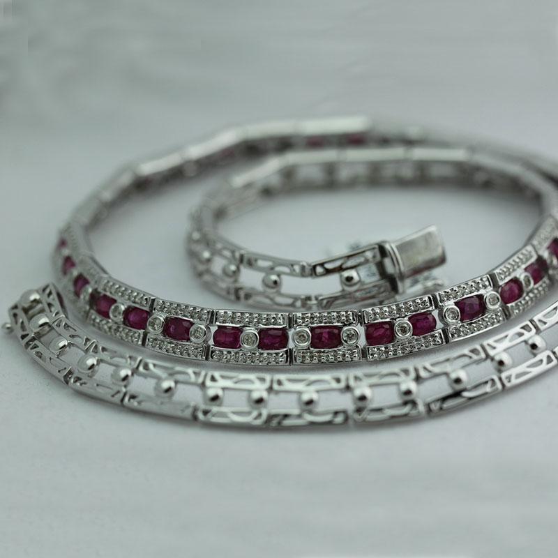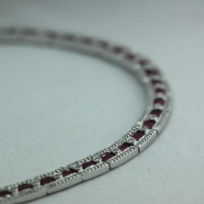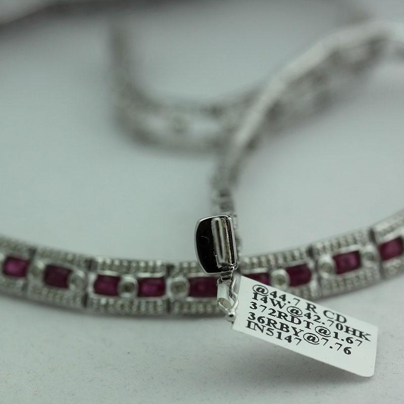 Item details: DIAMOND: 372 Round cut White Diamond @ 1.67ct ---GEMSTONE: 36 Ruby @ 7.76ct---METAL: 14K White Gold---Metal weight 42.7 grams---SKU: 288229C-1 --- Consignor: RC Fine Jewelers --- Availability: Ready to Ship