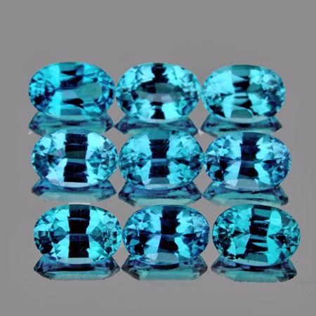 Natural Blue Zircon SHAPE : Oval; SIZE ( L x W x D ) : 5.00 x 3.00 mm; QUANTITY : 9 pieces ( Perfectly Matched Set ) COLOR : Blue AAA Color ; CLARITY : IF-VVS1 (BEST QUALITY) ORIGIN : Cambodia; HARDNESS : 7.5; LUSTER : Excellent!!! TREATMENT : unHeated