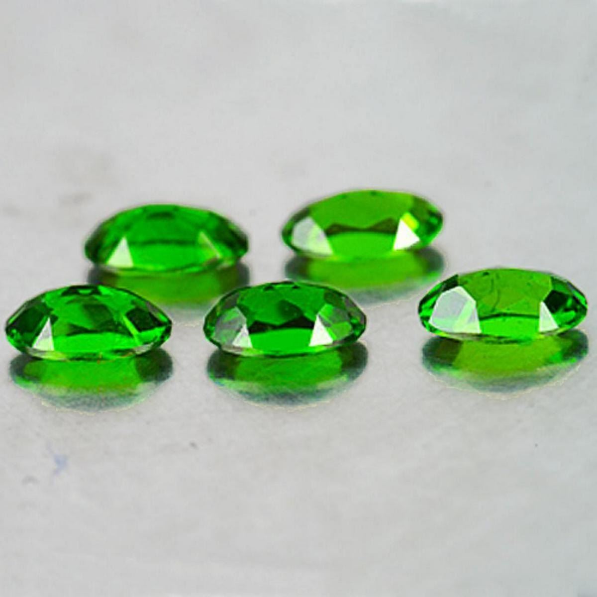 Natural Diopside; SHAPE : Oval; SIZE ( L x W x D ) : 5.00 x 3.00 mm; QUANTITY : 5 pieces ( Perfectly Matched Set) COLOR : Chrome Green ; CLARITY : IF-VVS1; ORIGIN : Russia; HARDNESS : 6; LUSTER : Excellent!!! TREATMENT : 100% Natural Unheated;