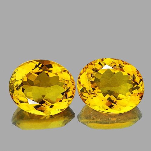 Natural Citrine WEIGHT : 26.17 cts; SHAPE : Oval; SIZE ( L x W x D ) : 17.00 x 14.00 mm; QUANTITY : 2 pieces (Perfectly Matched Pair); COLOR : AAA Golden Yellow; CLARITY : IF-VVS1 ; ORIGIN : Africa; HARDNESS : 7; LUSTER : Excellent!!! TREATMENT : 100% Natural Unheated