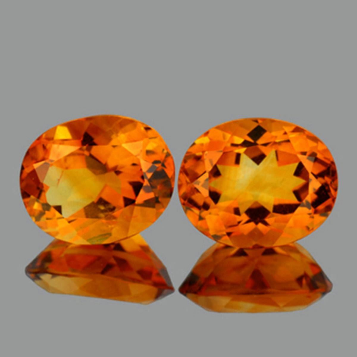 Natural Citrine WEIGHT : 5.07 cts; SHAPE : Oval SIZE ( L x W x D ) : 10.00 x 8.00 mm QUANTITY : 2 pieces (Perfect Matching Pair) COLOR : Golden Yellow AAA COLOR CLARITY : VVS ORIGIN : Africa HARDNESS : 7 LUSTER : Excellent!!! TREATMENT : 100% Natural Unheated