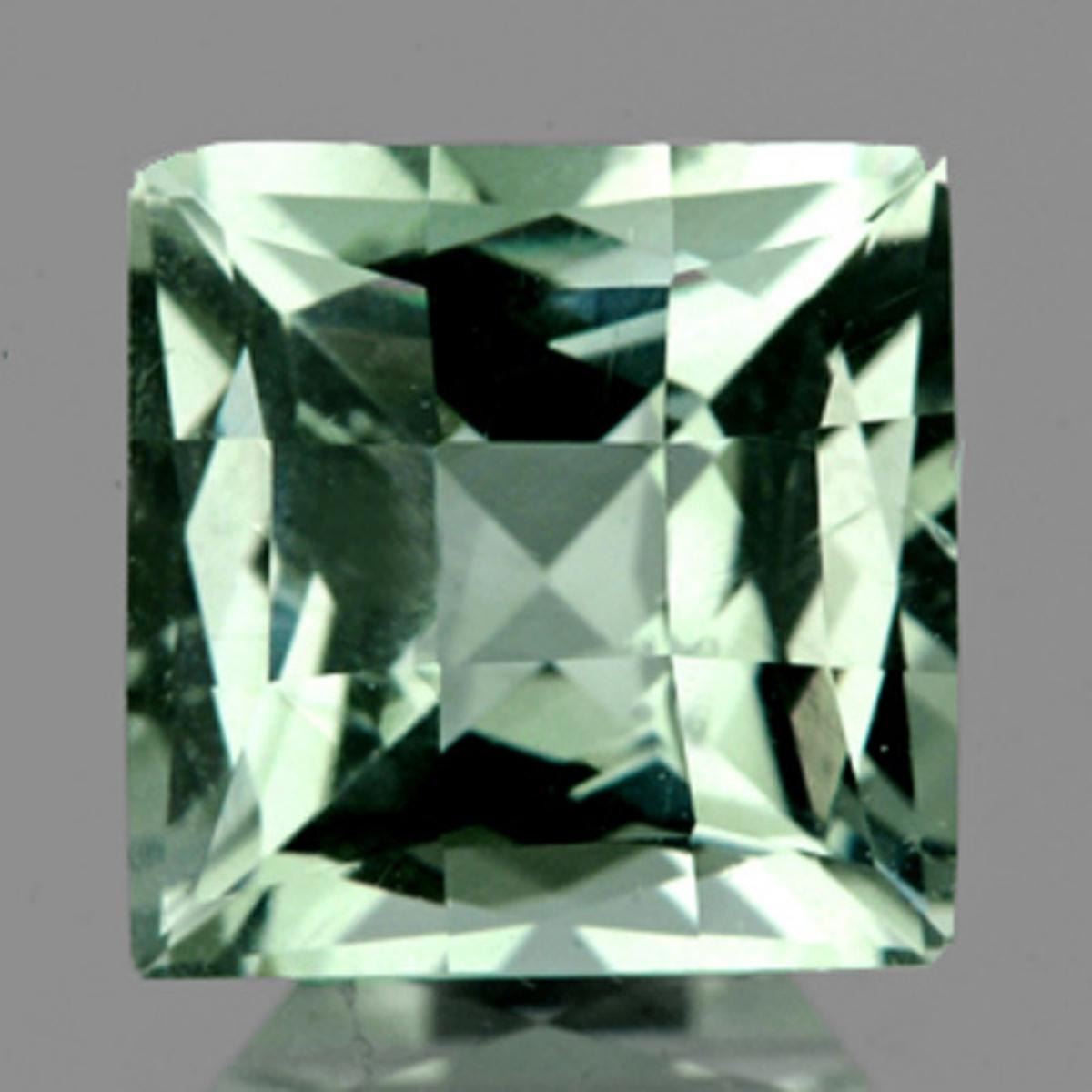 Natural Green Amethyst WEIGHT : 8.68 cts; SHAPE : Square Checker SIZE ( L x W x D ) : 14.00 mm QUANTITY : 1 pieces COLOR : Green AAA Color CLARITY : Flawless-VVS1 ORIGIN : Africa HARDNESS : 7 LUSTER : Excellent!!! TREATMENT : Heated