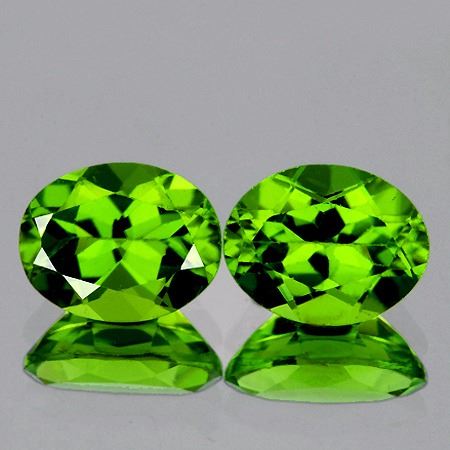 Natural Peridot..... SHAPE : Oval; SIZE ( L x W x D ) : 9.00 x 7.00 mm; QUANTITY : 2 pieces ( Perfectly Matched Pair ) COLOR : AAA Green Best Color; CLARITY : IF-VVS1 (BEST QUALITY); ORIGIN : PAKISTAN;; HARDNESS : 7; LUSTER : Excellent!!! TREATMENT : UNHeated