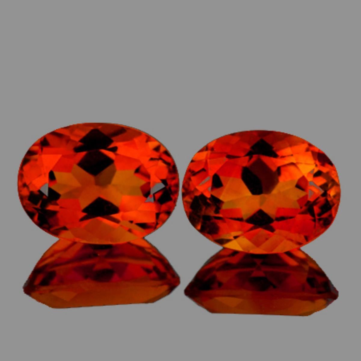 Natural Citrine WEIGHT : 4.72 cts SHAPE : Oval SIZE ( L x W x D ) : 10.00 x 8.00 mm QUANTITY : 2 pieces (Perfect Matching Pair) COLOR : Intense Madeira Orange AAA COLOR CLARITY : Flawless-VVS1 AAA Grade ORIGIN : Brazil HARDNESS : 7 LUSTER : Excellent!!! TREATMENT : Heated