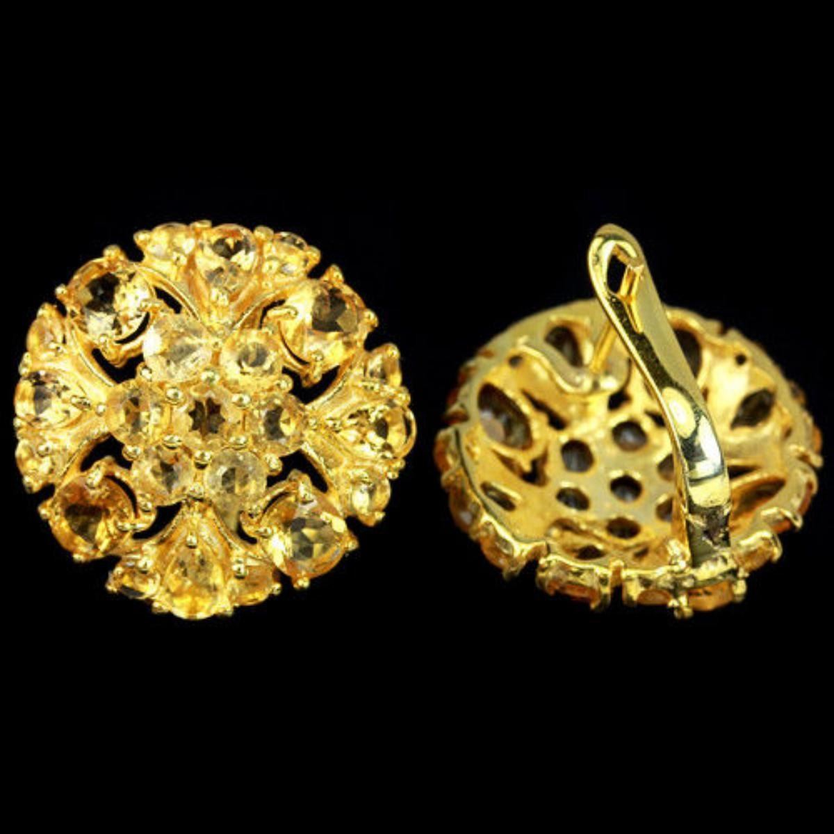 ORANGISH YELLOW CITRINE 925 SILVER FLOWER EARRING 14K YELLOW GOLD COATING; STONE SHAPEOVAL ROUND PORTUGUESE CUTSTONE DIMENSION5 X 4 MM. , 5 X 3 MM. , 3.5 MM. , 3.2 MM. 2.5 MM.ITEM WEIGHT7.65 GRAMCOLORAAA ORANGISH YELLOWCLARITYIF, VVS - VSLUSTERDAZZLINGTREATMENTUNHEATED;ORIGIN OF STONE-BRAZIL;HARDNESS7.0;FACE OF EARRING 20 X 20 MM.
